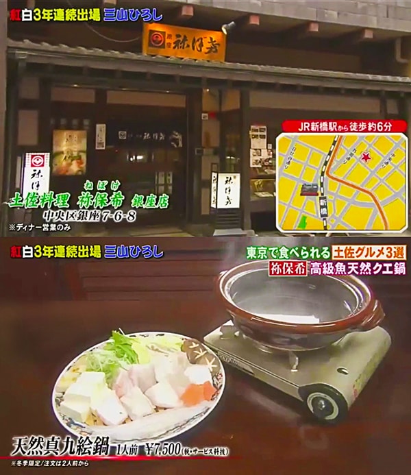 祢保希 銀座店と土佐名物のクエ鍋をご紹介いただきました。