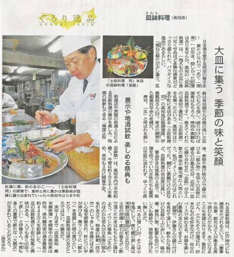 - 11/12(月)朝日新聞(全国版)で司本店の皿鉢料理が掲載されました。